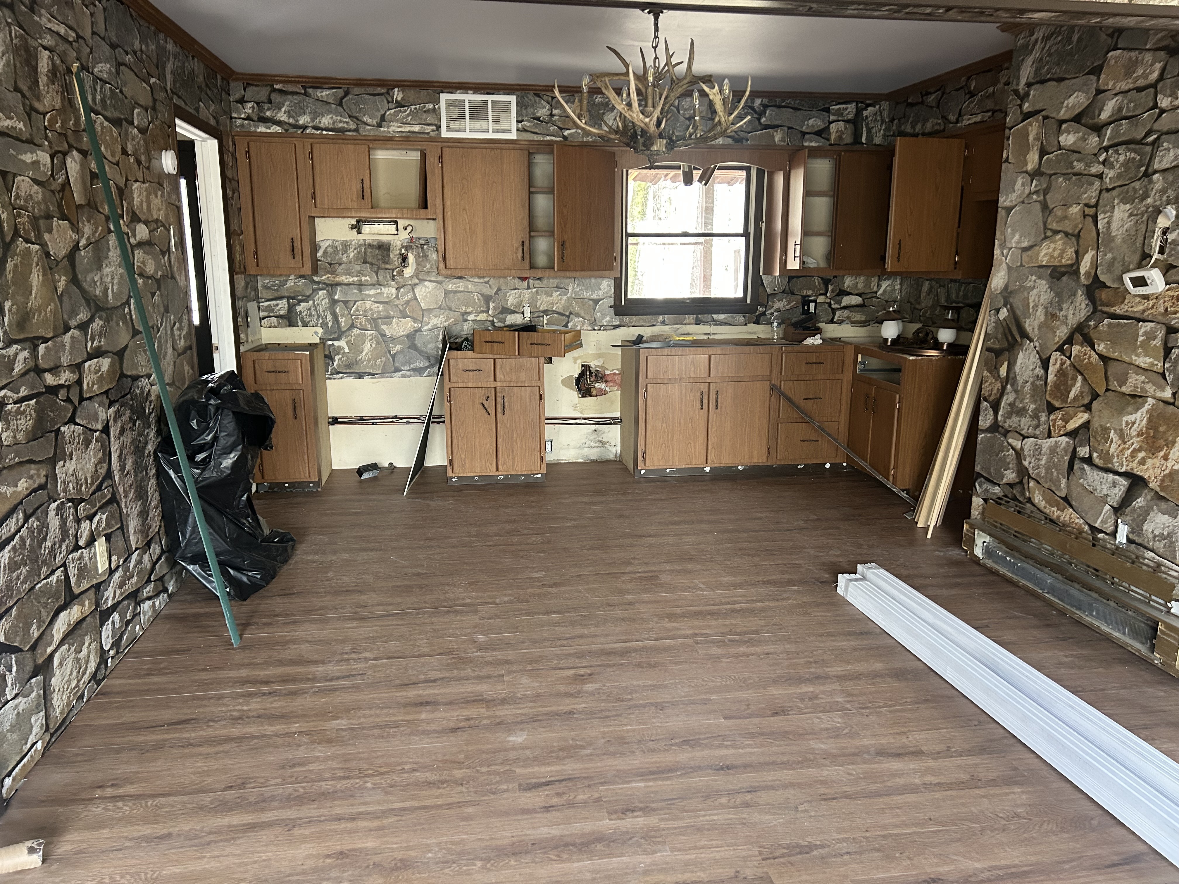 We had an appointment this morning to reglaze the upstairs bathroom tub—yes, that pink tub straight out of the era it was installed. And let’s not forget its matching pink toilet, now officially retired. Progress! Walking into the cabin, we were thrilled to see two chandeliers installed, adding a touch of charm. Eight doors have…